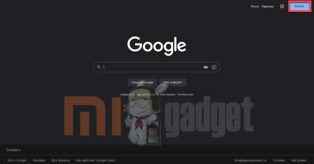 Запустите браузер, перейдите по адресу google.com, кликните кнопку «Войти».