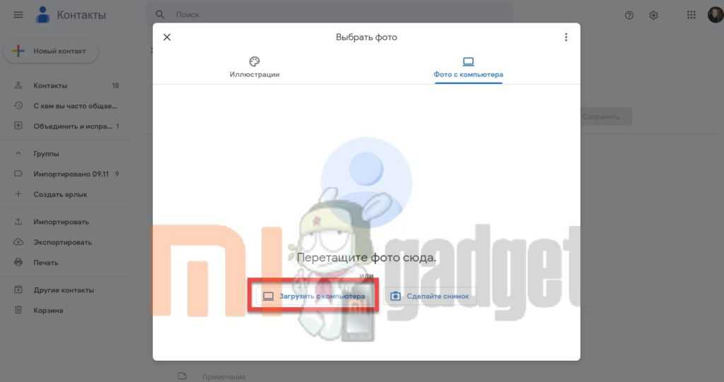 Щёлкните по кнопке «Загрузить с компьютера».