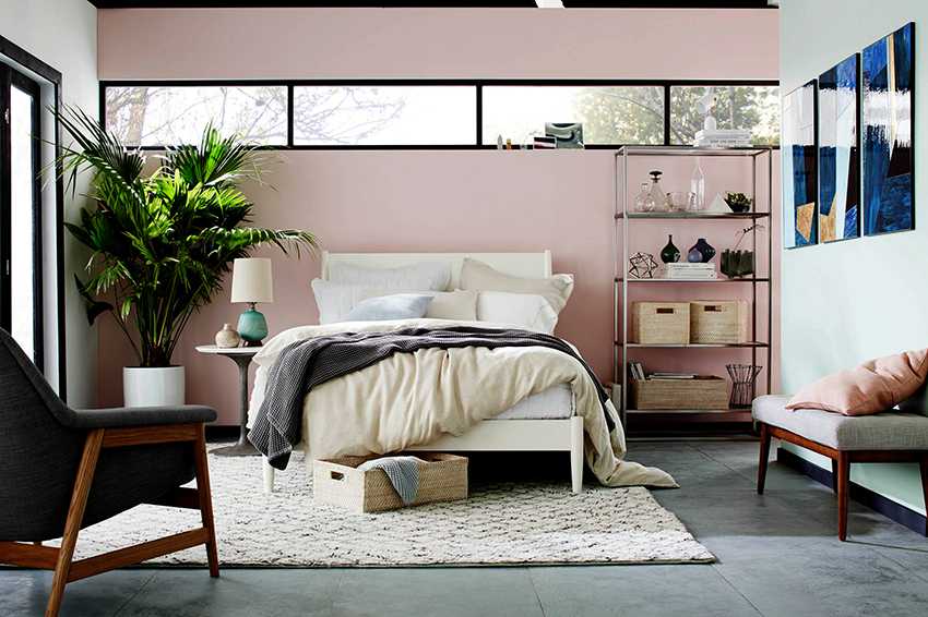 Приглушенный, мягкий пудровый оттенок розового превосходно подойдет для спальни. Может быть использован в любых стилях, включая суровые нордические. Этот цвет привносит свежесть и теплоту.