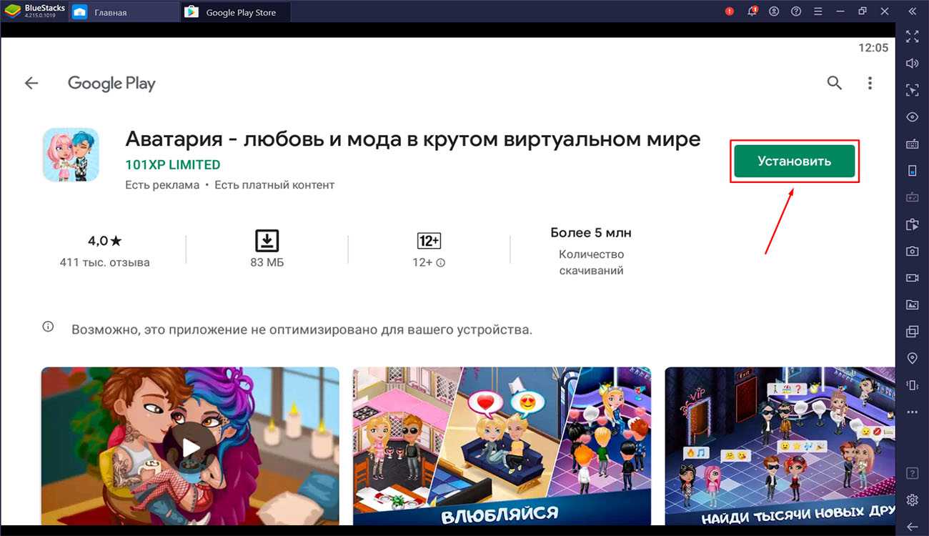 - найти игру во встроенном магазине приложений и скачать игру Аватария на свой ПК.