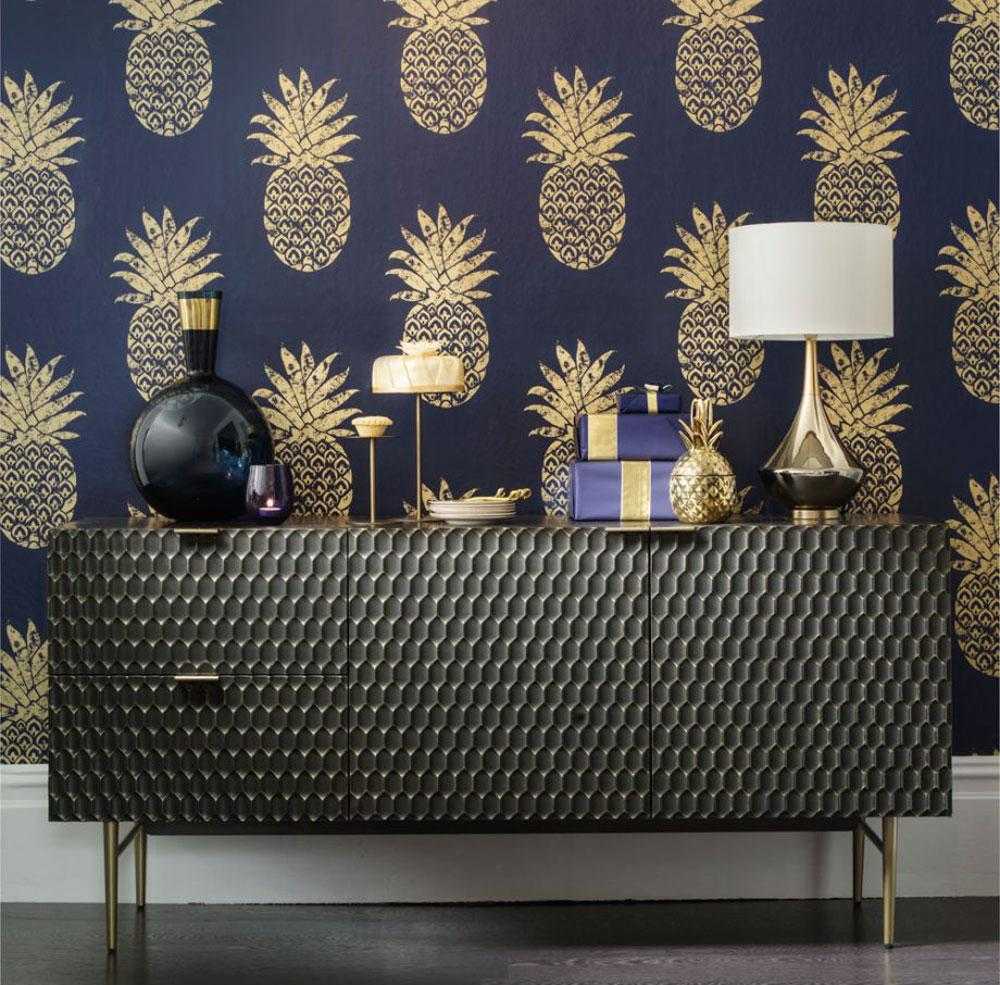 Дизайн обоев для однокомнатной квартиры с ананасами