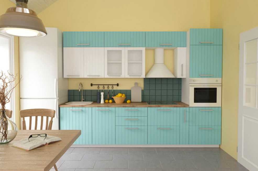 Кухня в серо-мятном цветеИсточник terrout3.biz