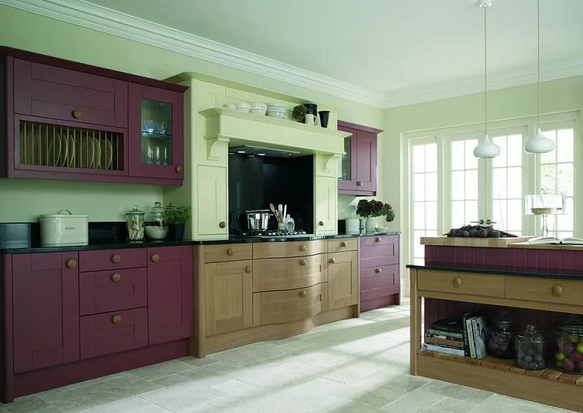 Это направление, в котором светло-зеленый и бледный тона чаще встречаются в фасаде мебели. В таких случаях может присутствовать три цвета, близких по палитре. В качестве дополнения отлично смотрится отделка стен полосатыми обоями или декоративной краской с интересной фактурой.