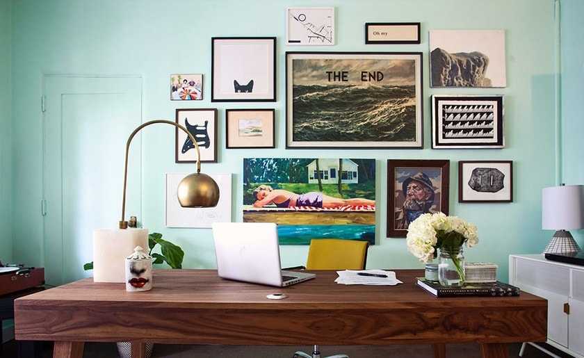 - Мятные стены считаются изюминкой и подходят для классического оформления интерьера. Такой вариант лучше всего сочетается с интересным декором, рамочными модульными картинами и черно-белыми аксессуарами.