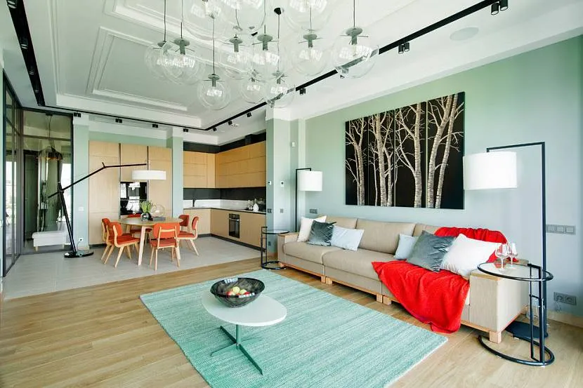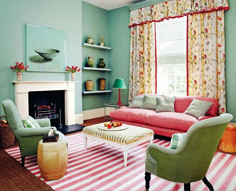 Главное правило, о котором следует всегда помнить — это то, что мятный цвет в интерьере гостиной представляет собой комбинацию зеленого и голубого цветов, и поэтому он относится к холодным оттенкам.