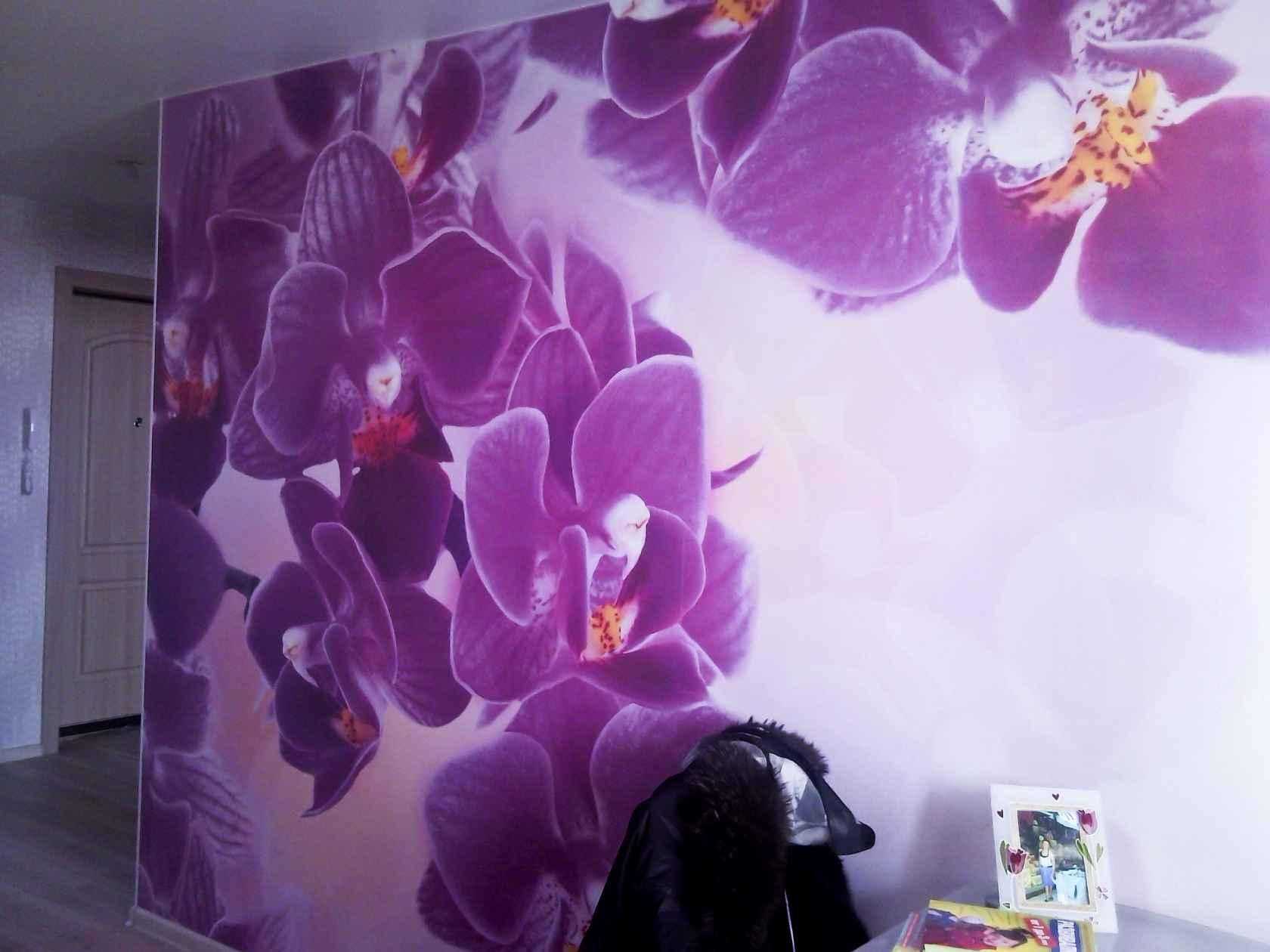 - Обои с орхидеями подойдут практически для любого стиля. Изображения экзотических цветов подойдут для неоклассики, минимализма и арт-деко. А вот в стилях кантри, поп-арт, панк и эко-стиле, такой декор будет смотреться не удачно.