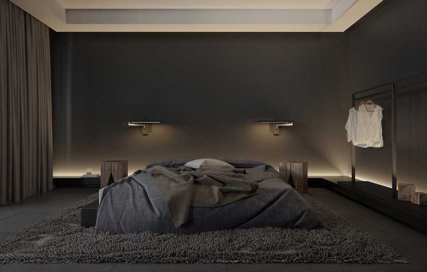 Светлые и темные тона играют важную роль в визуальном расширении и сужении пространства. Черный подойдет только для больших по площади спален.